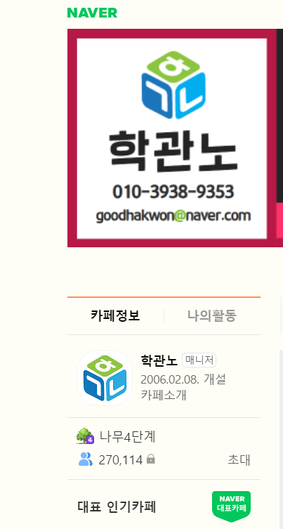 : 학원 원장님들과 강사분들, 또 예비 원장님들께서 모인 네이버 카페로 자료와 정보가 풍부합니다.